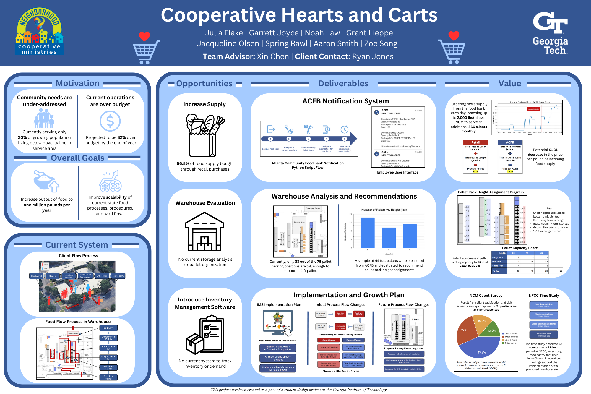 These three deliverables work in tandem to increase throughput capacity, aligning with NCM’s goal of growing their food distribution and providing for more families in need.